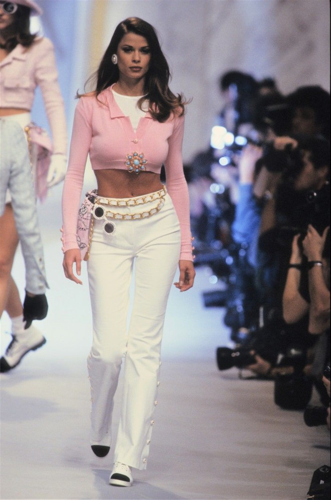 Có thể nói, Chanel là thương hiệu giúp món phụ kiện này phổ biến rộng rãi, trong các BST từ những năm 90 của họ hầu như luôn có mặt của món phụ kiện này. Từ kiểu dáng thanh mảnh, tinh tế cho đến những mẫu dây mắt xích to bản, có phần hầm hố, đính thêm mặt charm đều tạo được ấn tượng mạnh mẽ. Những outfit với chain belt trong BST ngày xưa của Chanel đến nay vẫn rất hợp mốt và được nhiều tín đồ sành mặc học hỏi.