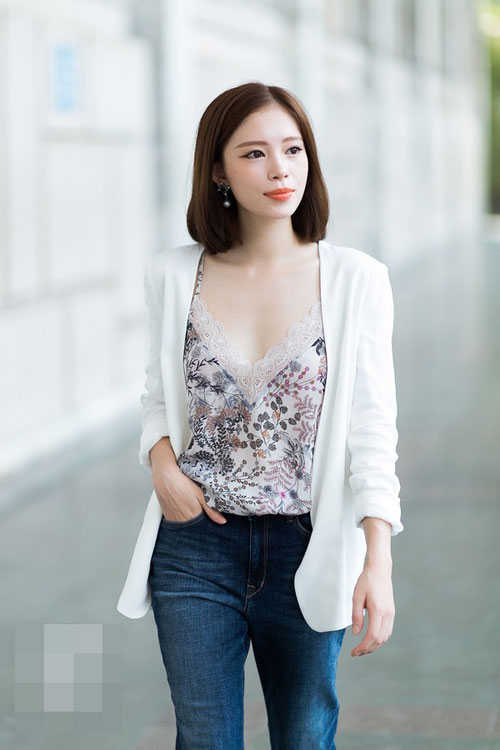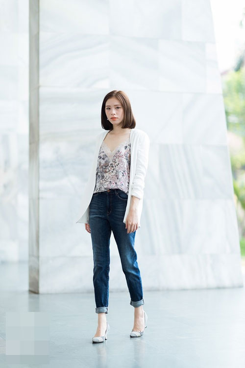 Để không lãng phi chiếc quần jeans dáng boyfriends, hãy kết hợp với những món đồ nữ tính đậm đặc mà vẫn hợp với môi trường công sở của bạn. Áo cami hoa đính ren trở nên cuốn hút và phóng khoáng mà vẫn thanh lịch khi kết hợp với blazer trắng mỏng.