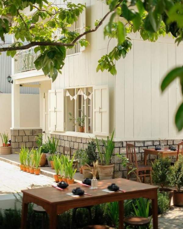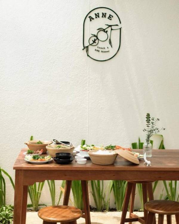 Tiệm ăn Anne hay còn được các bạn gọi vui là tiệm ăn dưới tán cây hồng vì trước sân là có một cây hồng rất to phủ bóng cả khuôn viên sân vườn của tiệm. Khi đi vào bên trong, sẽ là một căn nhà trằng hai tầng tông trắng ấm cúng cùng mảnh vườn xinh xinh.