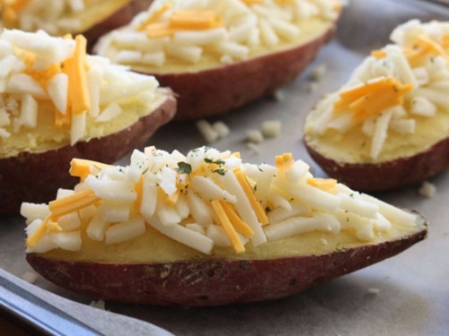 - Đặt khoai vào lò nướng, nướng ở 180 độ C trong 5-7 phút hoặc cho đến khi phô mai tan chảy hoàn toàn là được.