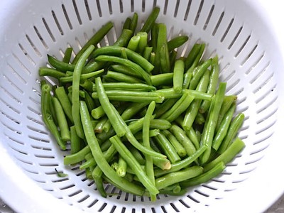 ![]() Trong khi luộc khoai tây bạn rửa sạch đậu và cắt thành những đoạn dài khoảng 5cm. |