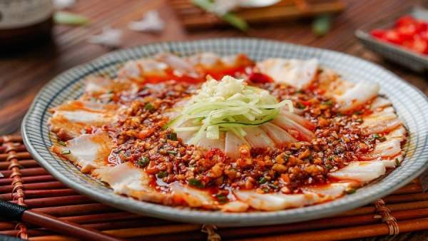 Lấy 20ml nước luộc thịt, 7ml xì dầu loại nhạt màu, 10g muối, 15ml dầu ớt, 4 tép tỏi băm nhuyễn trộn đều với nhau để làm nước sốt. Rưới nước sốt lên thịt hoặc dùng để chấm trực tiếp.
