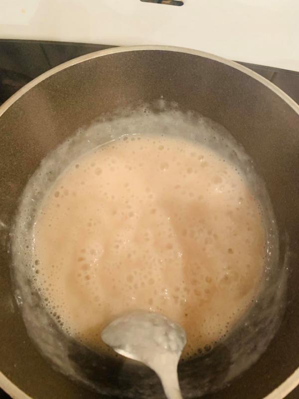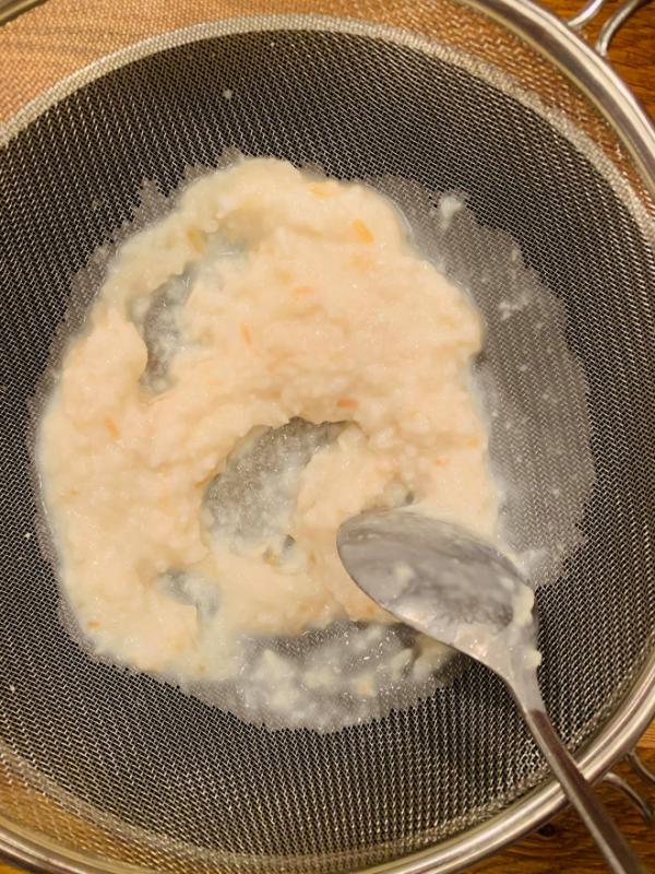 Mẻ chua cho thêm xíu nước, đổ qua rây lọc cho kĩ