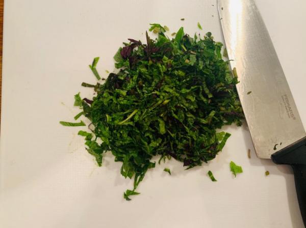 Các loại rau thơm: kinh giới, tía tô, húng xoăn, ngổ, lá nghệ non (không có cũng được).