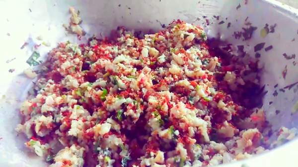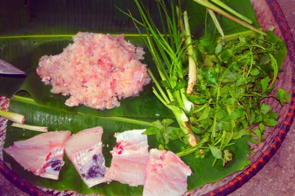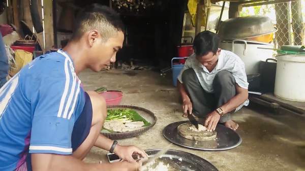 Cá suối được bằm nhỏ trước khi trộn với kiến vàng