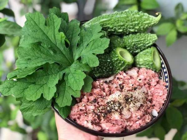 Mướp đắng nhà chị My Na, quả để xào hay nhồi thịt, lá chị cuốn chả.