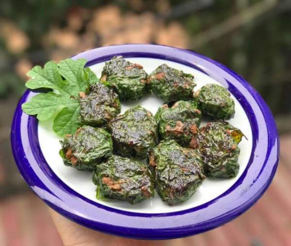 Chả cuốn lá mướp đắng khi chiên xong, cắn miếng chả ngọt, bùi thơm của thịt quện lẫn mùi thơm nhẹ và hơi đắng của lá. Tổng thể lại tạo nên vị rất ngon.