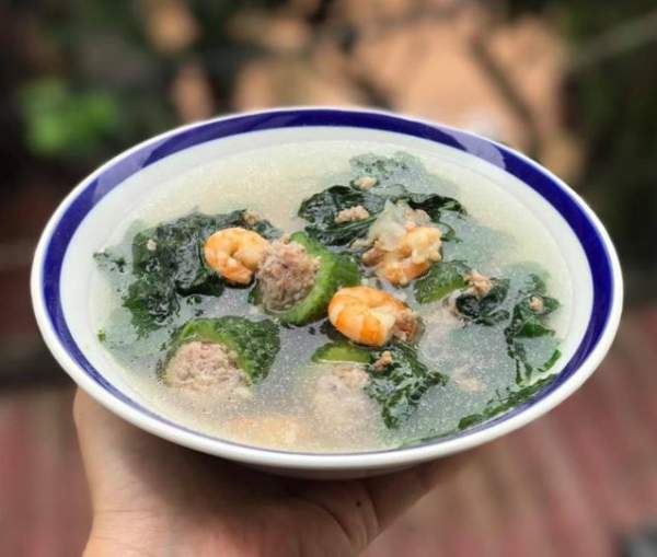 2. Canh mướp đắng nhồi thịt thả tôm khô và lá mướp đắng