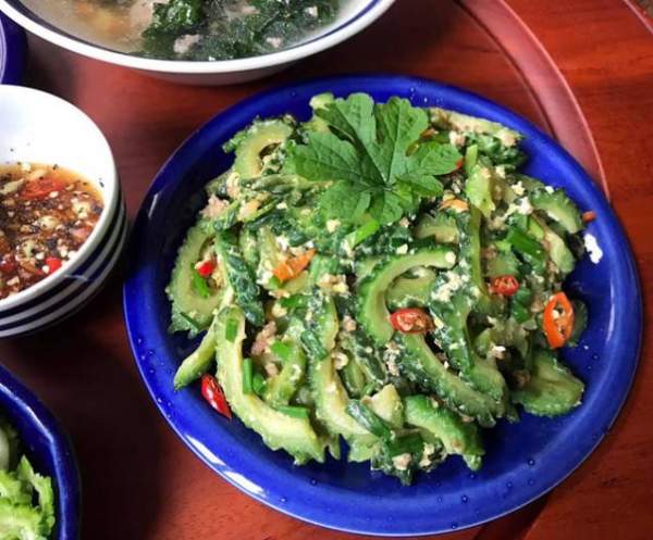 Và để chiều đam mê của chồng, chị My Na đã chế biến mâm cơm 4 món từ mướp đắng. Mâm cơm "toàn đắng" của nhà chị My Na đã khiến hội chị em xôn xao. Nhiều chị em hài hước chia sẻ, nhìn thôi là đã thấy cơm trưa nay mình ăn cùng nước mắm. "Không hiểu sao trên đời không sợ gì mà mình chỉ sợ đắng", một thành viên thú nhận.