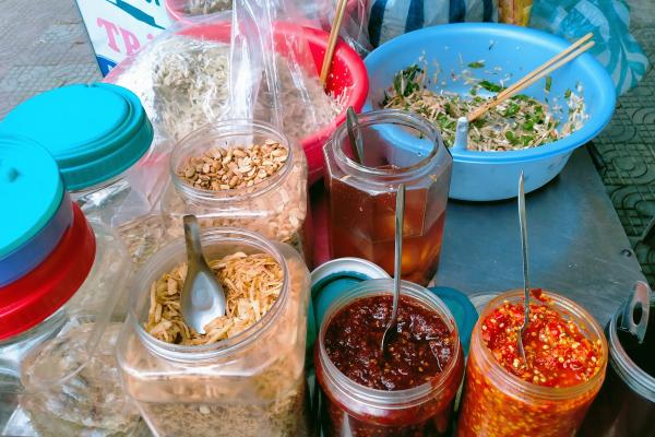 Bên cạnh đó, nguyên liệu phụ như rau răm, đậu phộng, hành phi, tương ớt, dầu đậu phộng... cũng vô cùng quan trọng giúp hương vị món ăn càng thêm đặc sắc. Tất nhiên không thể không nhắc đến linh hồn của món ăn nằm ở phần mắm chua ngọt và cay cay kích thích vị giác.