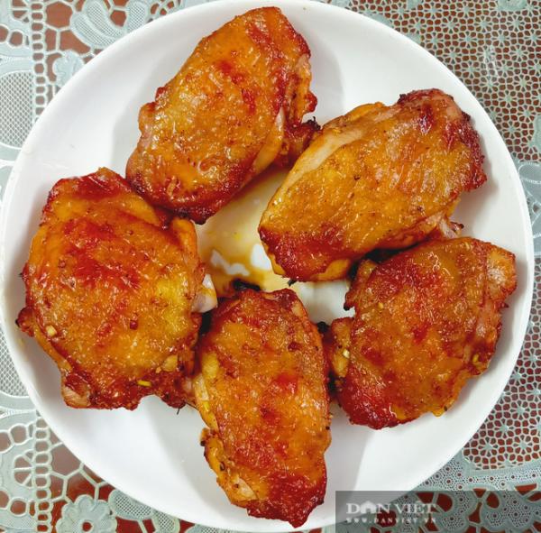 - Tất cả trộn cùng nhau và dùng tay xoa miếng má đùi cho thật kỹ. Để tầm 30 phút cho thấm rồi cho vào nồi chiên không dầu. (Nhiệt độ 180 độ 15 phút trở mặt).