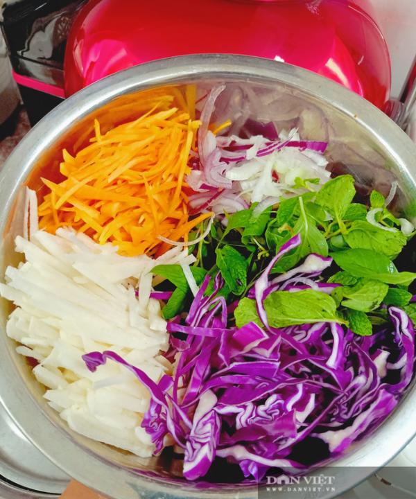 Hành tây xắt nhuyễn, củ đậu, cà rốt, bắp cải thái sợi