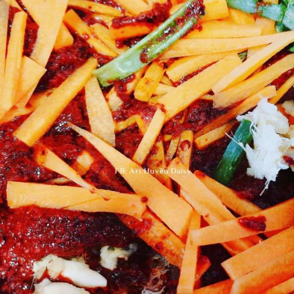 - Cà rốt nạo bỏ vỏ, cắt khúc 4cm và thái sợi (nếu muốn cho củ cải nữa thì thái như cà rốt).