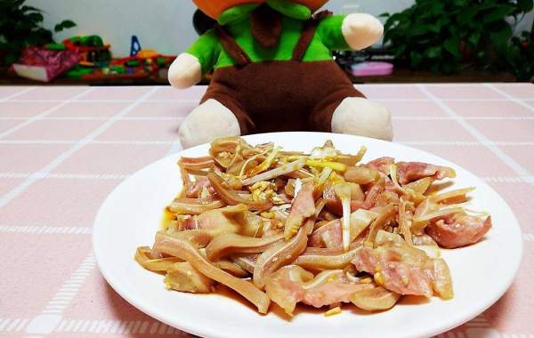 Bước 1: Rửa sạch tai heo, cho nước vào nồi, cho tai heo, gừng và hành lá vào. Đun sôi trên lửa lớn sau đó chuyển sang lửa vừa và nhỏ, nấu khoảng 40 phút, dùng đũa đâm vào tai heo có thể thấy tai heo đã chín.