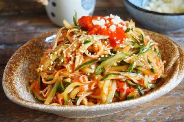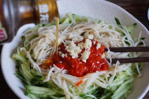Làm món nộm dưa chuột nấm kim châm kiểu Hàn cực đơn giản chỉ với 4 bước