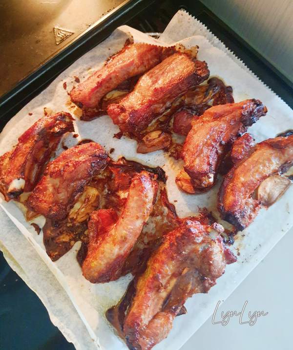 - Sau đó, lật mặt sườn, xịt thêm 1 lớp dầu ăn, rồi nướng thêm 10 phút với 180 độ