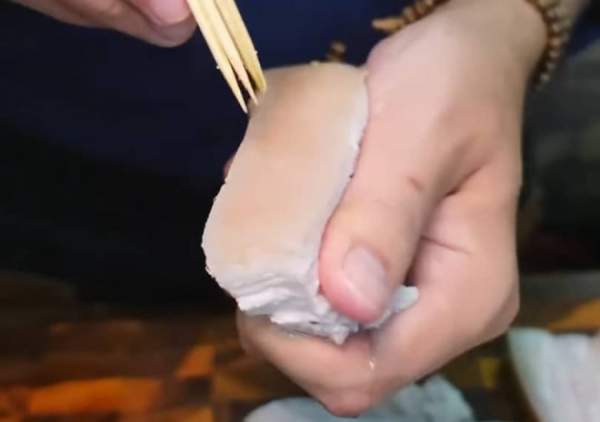 Xăm thịt bằng dĩa hoặc que xiên đều được