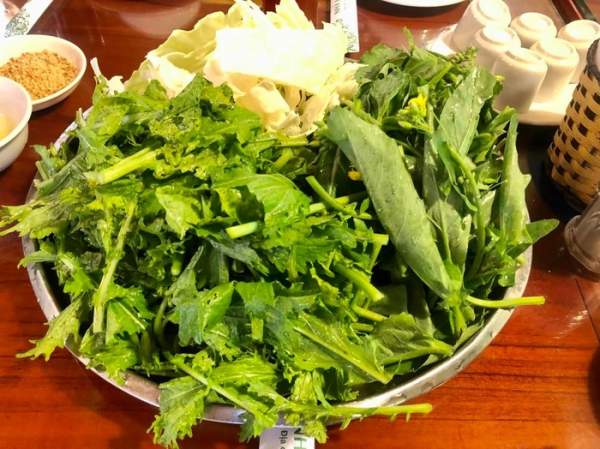 Đa dạng các loại rau ăn kèm với lẩu cá tầm
