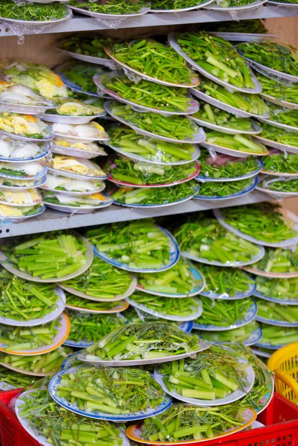 Các món ăn của quán hầu hết đều được chuẩn bị sẵn, được bọc lại cẩn thận và chỉ cần khách ngồi vào bàn là có người bưng ra phục vụ giống hệt cách người miền Tây đi ăn cưới.