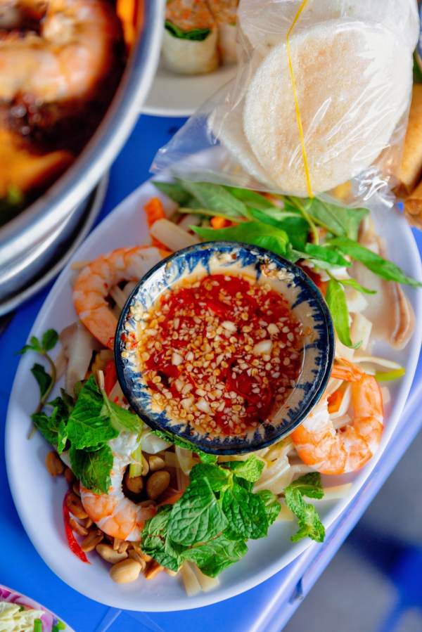 Món bì cuốn vừa mềm mềm của bánh tráng, vừa giòn của rau củ, vừa dai của bì, thính chấm cùng nước mắm cay ngọt cực bắt vị