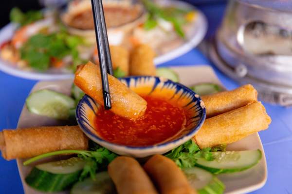 Dĩa chả giò nhân khoai môn chấm mắm sệt là lạ của miền Tây