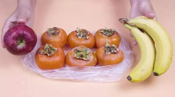 Bạn có thể lấy một vài quả lê, táo hoặc chuối chín, cho vào thùng hoặc túi nilon cùng với hồng. Đậy nắp thùng (buộc chặt miệng túi nilon) và để 2-3 ngày rồi mang hồng ra. Làm như vậy hồng sẽ chín nhanh hơn.