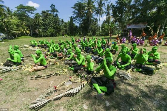 Lễ hội sơn xanh lên người để xua đuổi tà ma ở đảo Bali