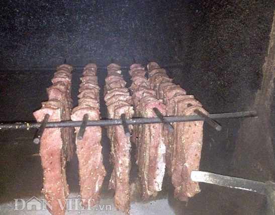 Thịt trâu muốn ngon và lạ mắt thì phải dùng que tre để xiên thịt treo lên gác bếp
