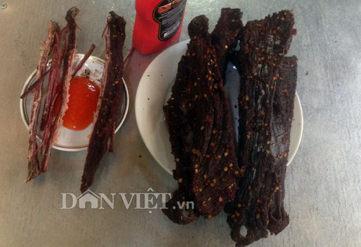 Thịt trâu gác bếp sau khi chế biến xong có màu nâu sẫm và rất thơm