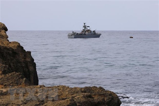 Tàu hải quân Israel tuần tra ở vùng biển ngoài khơi khu vực Rosh Hanikra, gần biên giới với Liban, ngày 4/10/2022. (Ảnh: AFP/TTXVN)Phóng viên TTXVN tại Trung Đông dẫn thông cáo ngày 16/10 của quân đội Liban khẳng định các tàu hải quân của Israel hôm 15/10 đã nhiều lần xâm phạm lãnh hải Liban ở vùng biển đối diện khu vực Rosh Hanika gần biên giới hai nước.