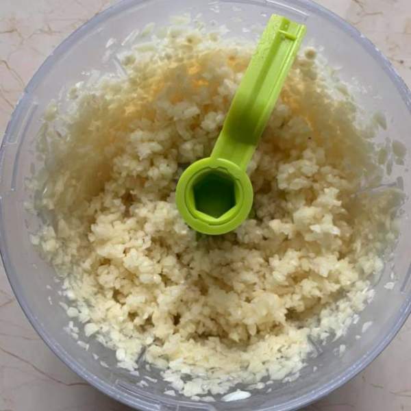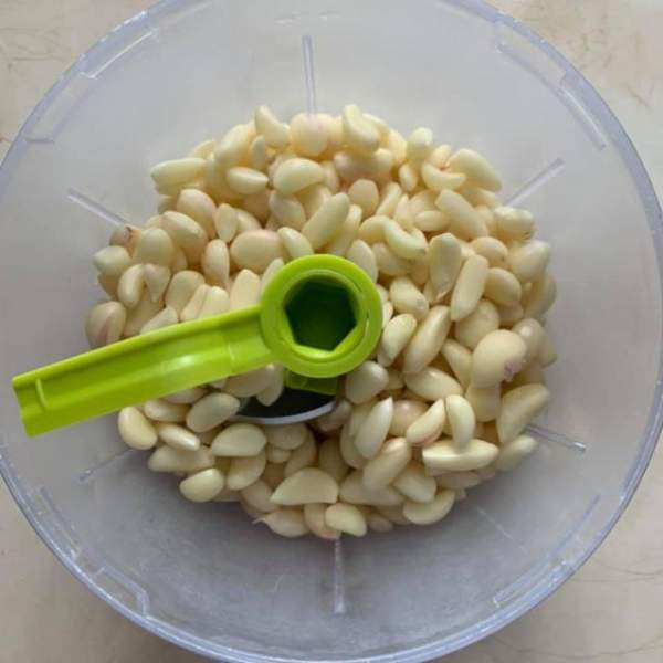 Bước 2: Tỏi sau khi được bóc vỏ cho vào máy xay nhuyễn.