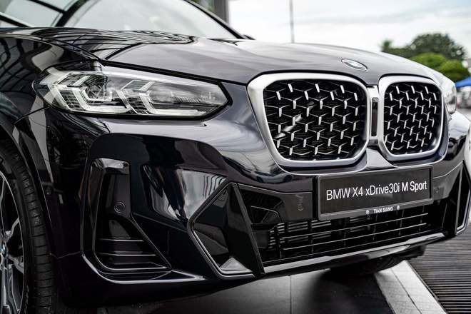 Bản facelift của X4 mới có một số thay đổi dễ nhận thấy ở ngoại thất. Cản trước/sau mới, lưới tản nhiệt góc cạnh hơn, cụm đèn mảnh hơn kèm bộ mâm M kích thước 19 inch với chấu dạng chữ Y. Nâng cấp lớn ở ngoại thất là bộ đèn Laser thay cho Adaptive LED. Do là bản M Sport nên xe có gói bodykit thể thao.
