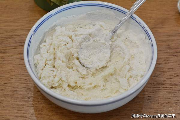 Khi thấy khoai còn hơi ấm, cho men và bột mì vào trộn đều.