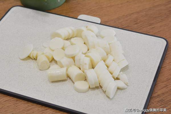 Khoai từ vọt vỏ, cắt lát mỏng.