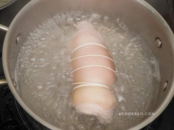 Lưu ý: Khi quấn sợi chỉ bạn nhớ quấn cho thật chặt tay để cố định chân giò, giúp chân giò sau khi luộc sẽ có hình dáng đẹp mắt, ngon miệng hơn.