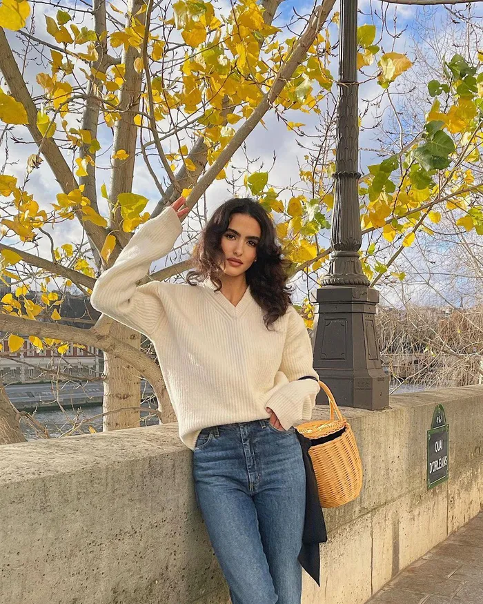 Áo len trắng là item gần như quý cô người Pháp nào cũng mê. Rất dễ hiểu thôi, áo len trắng chính là bảo chứng cho vẻ ngoài trang nhã và thanh lịch, không bao giờ lỗi mốt, lại rất dễ mix đồ. Chỉ riêng áo len cũng có nhiều phiên bản được gái Pháp ưu ái, chẳng hạn như áo len trắng cổ tim, áo cổ lọ, áo len xù hay áo cardigan… kiểu nào cũng trendy, xinh xắn cả. Thêm một điều đáng chú ý nữa, đó là gái Pháp không chuộng lắm cách mix áo len trắng với những items lòe loẹt, dù bộ đôi này cũng không đến nổi lệch pha nhau. Thay vào đó, các quý cô nước Pháp thích bắt cặp áo len trắng với những kiểu chân váy, quần dài màu trung tính, hay quần jeans; những ý tưởng này đều đơn giản mà ghi trọn điểm tinh tế, nhã nhặn.