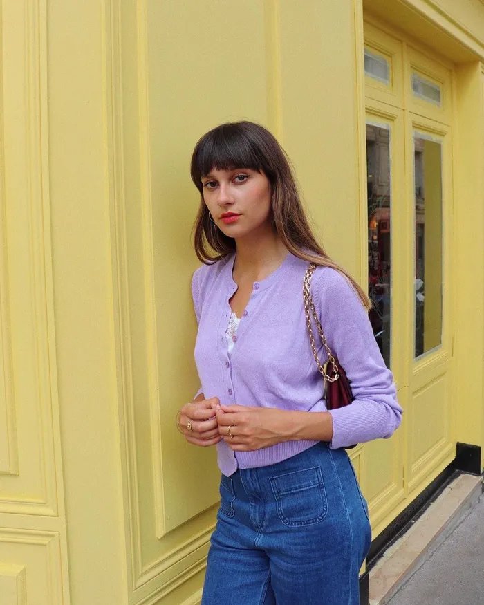 Chưa biết sang tới năm 2021, đồ tím có còn duy trì được sức nóng của mình hay không nhưng ở hiện tại, gái Pháp vẫn rất mê những chiếc áo len mang gam màu mộng mơ này. Thường thì, gái Pháp sẽ chọn áo len màu tím lilac hoặc tím khoai môn – hai sắc tím rất dễ diện, trông ngọt ngào và sành điệu chứ không bị sến. Cách diện áo len tím của gái Pháp cũng đơn giản không tưởng, cô nào cô nấy đều mix với quần jeans để tăng gấp bội vẻ tươi trẻ, sành điệu. Dẫu vậy, nhờ thao tác sơ vin và chọn sắc tím khéo léo, những set đồ của phụ nữ Pháp vẫn giữ trọn vẻ thanh lịch, lãng mạn vốn có.