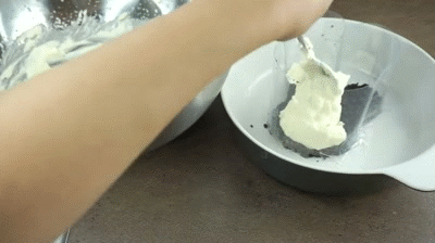Đánh cream cheese với đường và vani rồi đem trộn với kem tươi đánh bông với kĩ thuật fold (không khuấy mà hất thìa nhẹ từ dưới lên).