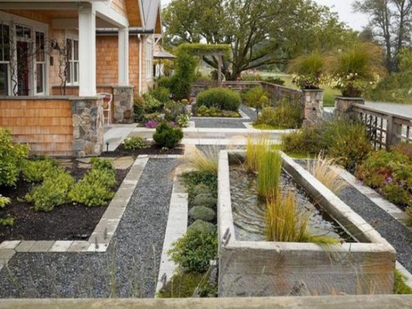 Sân vườn không chỉ ngập bóng cây mà còn có sự hiện hữu của yếu tố nước sẽ đem lại cảm giác trong lành, thanh sạch, khoan khoái.