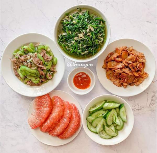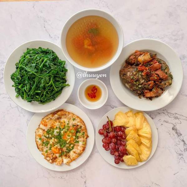 Thu Uyên rất chú trọng việc thay đổi thực đơn, không lặp lại liên tục các món tránh cảm giác ngán ngấy cho cả nhà. Hơn nữa, những mâm cơm mà cô nàng chuẩn bị lúc nào cũng phải "sặc sỡ", vừa tạo cảm giác ngon miệng vừa phục vụ việc chụp hình sống ảo.
