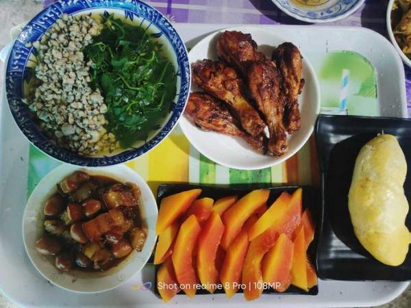 Chị Quyên chia sẻ thêm, tiền mua thực phẩm cho những bữa cơm chị nấu thường dao động ở khoảng 100.000 đồng nếu hôm đó ăn thịt hoặc cá biển.