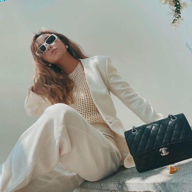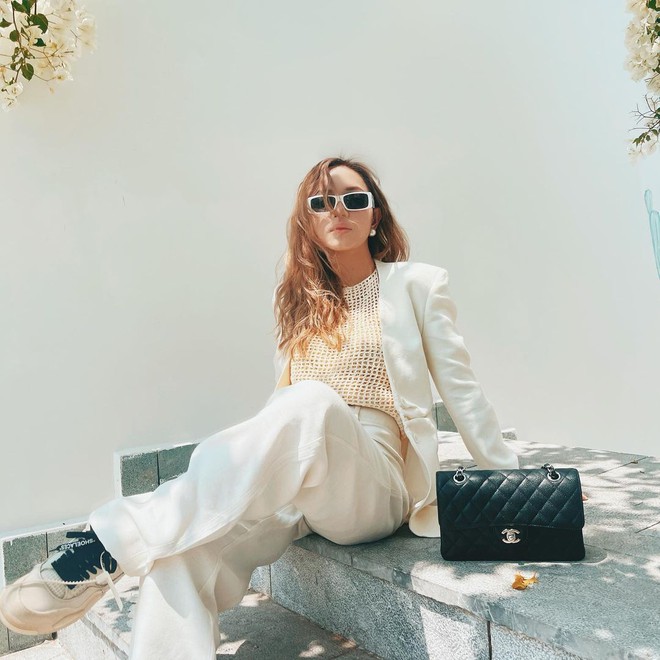 Đầu xuân năm mới mà Châu Bùi đã có dịp vi vu và cũng nhờ thế cô lại có cả lô ảnh để đời, tha hồ up dần. Ra vùng biển xanh cát trắng nhưng lần này, người yêu tin đồn của Binz lại đóng bộ khá cẩn thận với bộ suit trắng kem. Nhưng để bớt nhàm chán, cô mix áo lưới của Subtle Studio với Chanel Classic Flap Bag, thế là có cả set hay ho.
