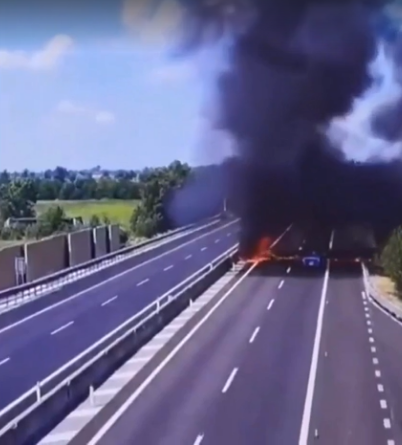 Phi cơ hạng nhẹ bay từ thị trấn Gragnano-Trebbiense trưa 22/7 lao xuống đường cao tốc A21 đông đúc phương tiện ở Azzano Mella, tỉnh Brescia, cách đó khoảng 100 km, rồi bốc cháy dữ dội.