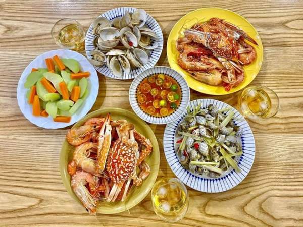 Người đẹp cũng chịu khó "đổi gió" thực đơn cho gia đình, khi thì ngập hải sản...