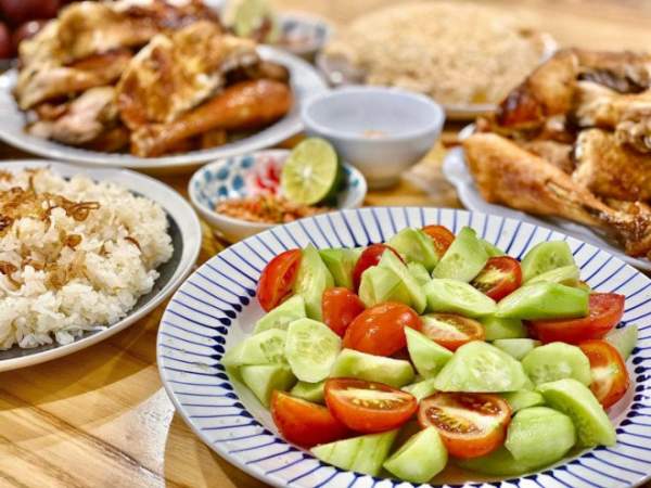 Đơn giản với gà rang gừng và các món rau cũng đủ hao cơm rồi.