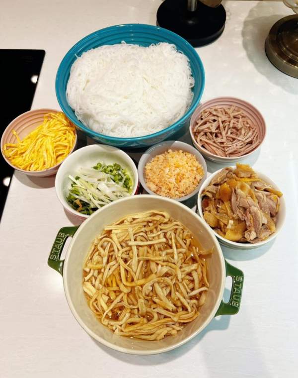 Mới đây, MC Diệp Chi chia sẻ bữa tối với món bún thang được làm với sự hỗ trợ của robot nấu ăn làm mọi người tò mò. Nữ đạo diễn Ai là triệu phú cho hay: "Lần đầu tui nấu bún thang. Sau 30 phút, các tô đều không còn giọt nước nào, vậy là thành công nhỉ".