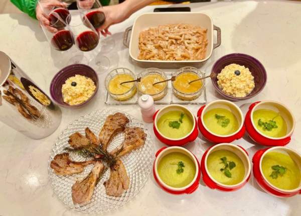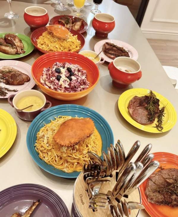 Bà mẹ một con đãi sinh nhật bố ruột mình với nhiều món sang chảnh như mì sốt cua, súp kem nấm, Créme Brulee, bít tết, sườn nướng...