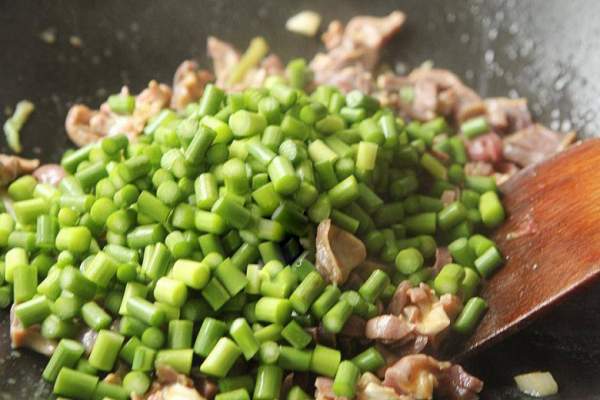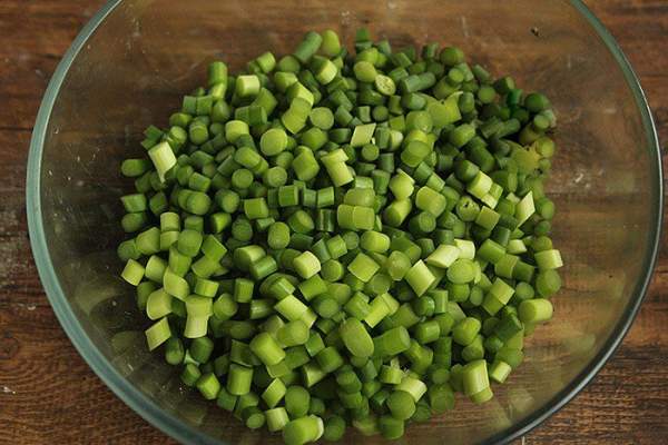 Ngồng tỏi rửa sạch, thái hạt lựu.