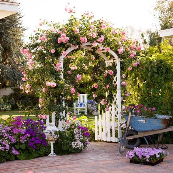 Bạn có thể tạo vòm và trồng hoa bên trong vườn như cách để tăng thêm vẻ đẹp đặc biệt cho không gian ngoại thất của gia đình