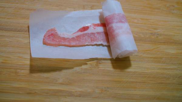 Mỗi lần mua thịt nhiều, chị Hoa thường chia nhỏ, dùng giấy sáp ong hoặc giấy nến, đặt từng miếng thịt lên trên đoạn giấy vừa kích thước thịt, cuộn tròn lại, xếp vào hộp đem trữ đông. Khi cần lấy sẽ tách từng miếng dễ dàng mà không phải rã đông